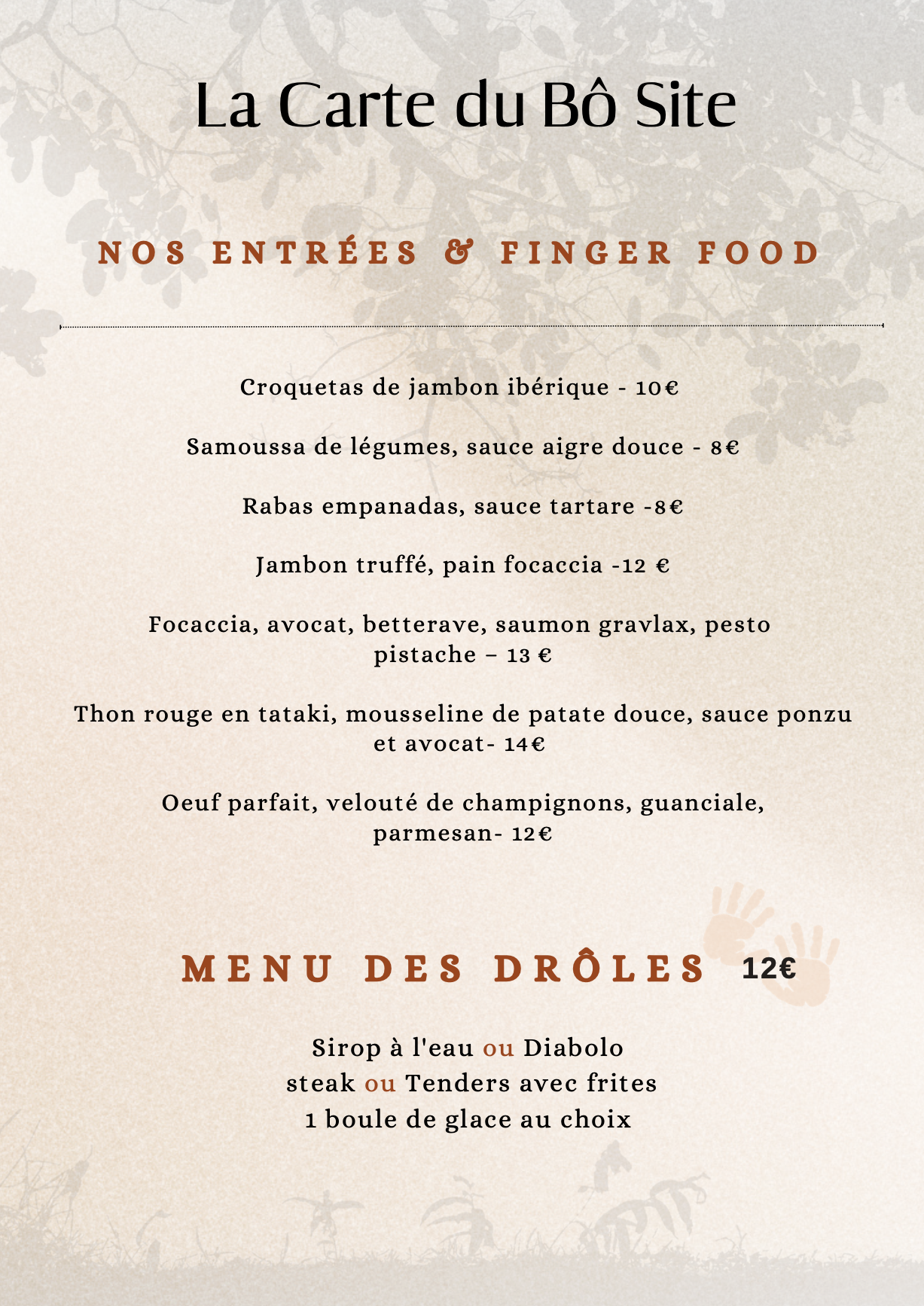 Chez Le Bô Site, notre carte est une invitation à un voyage gustatif au cœur des saisons.
