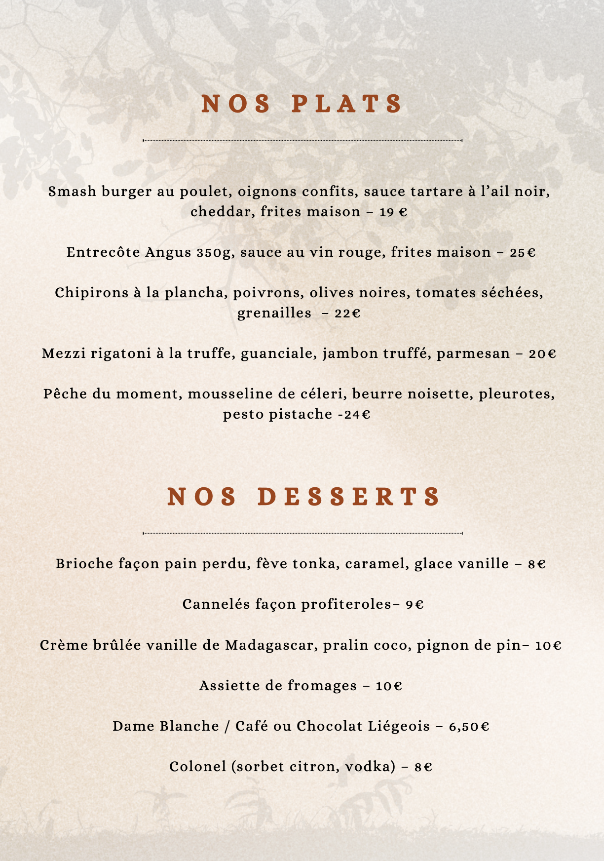 Notre menu évolue au gré des saisons, vous permettant ainsi de découvrir de nouvelles créations tout au long de l’année.